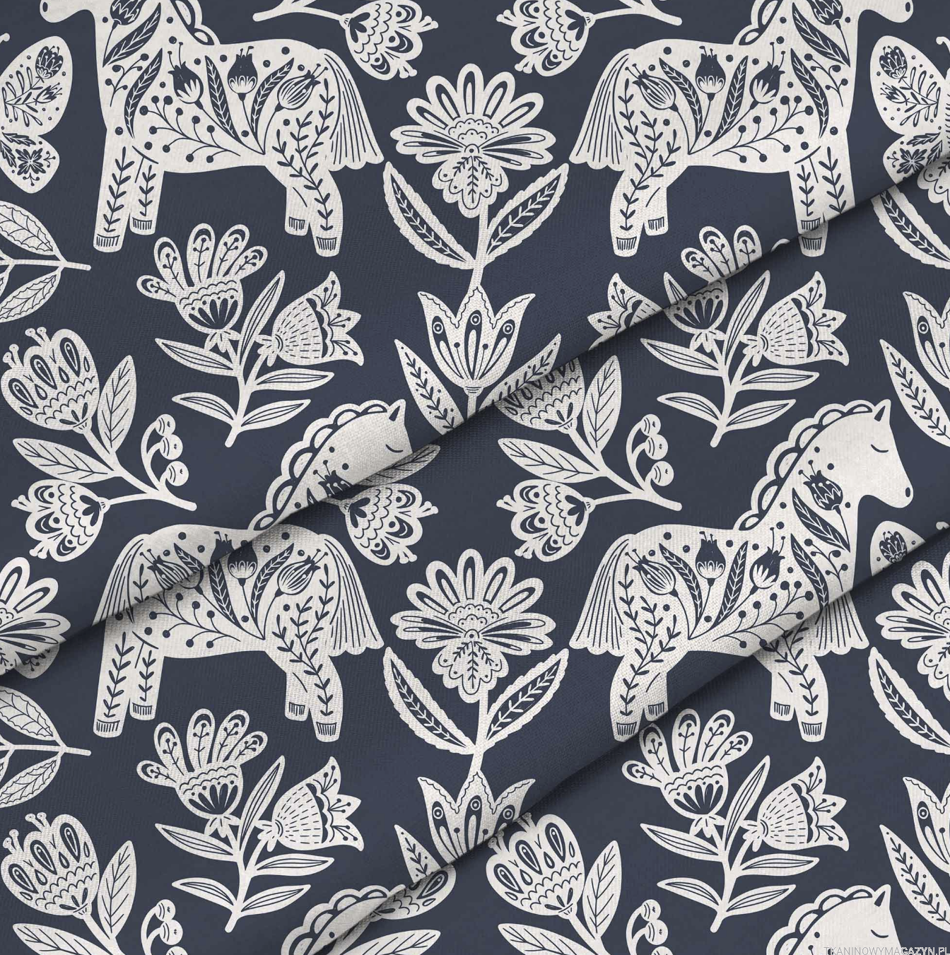TKANINA POLIESTROWA - FOLKOWE KONIKI